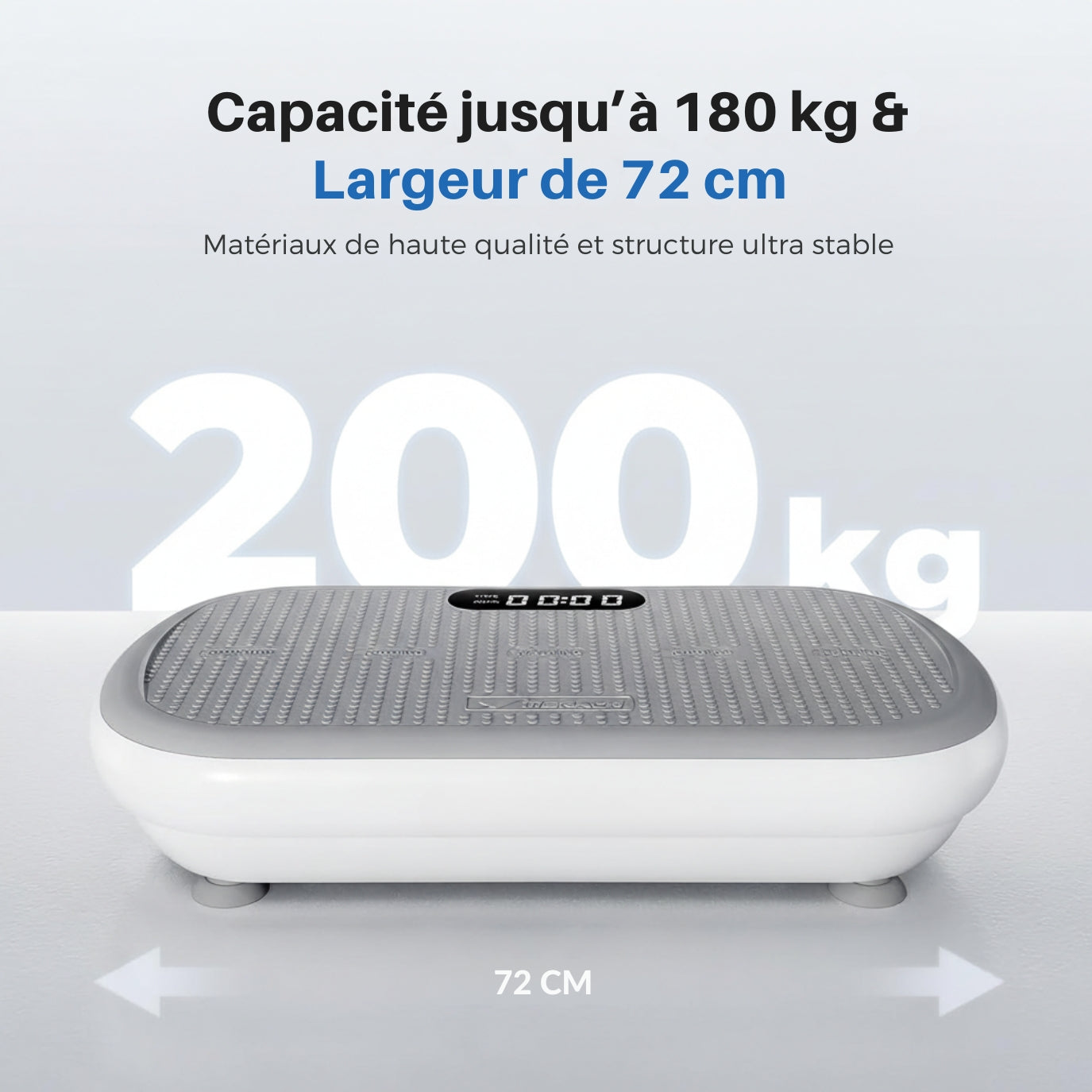 • Inclus : planche à vibrations, télécommande, bandes élastiques, câble/alimentation, manuel.