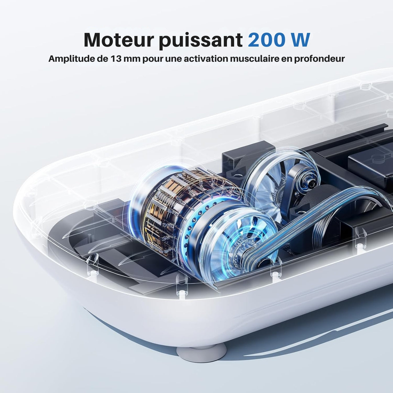 Les vibrations sollicitent les muscles en profondeur pour un travail global (jambes, fessiers, gainage).